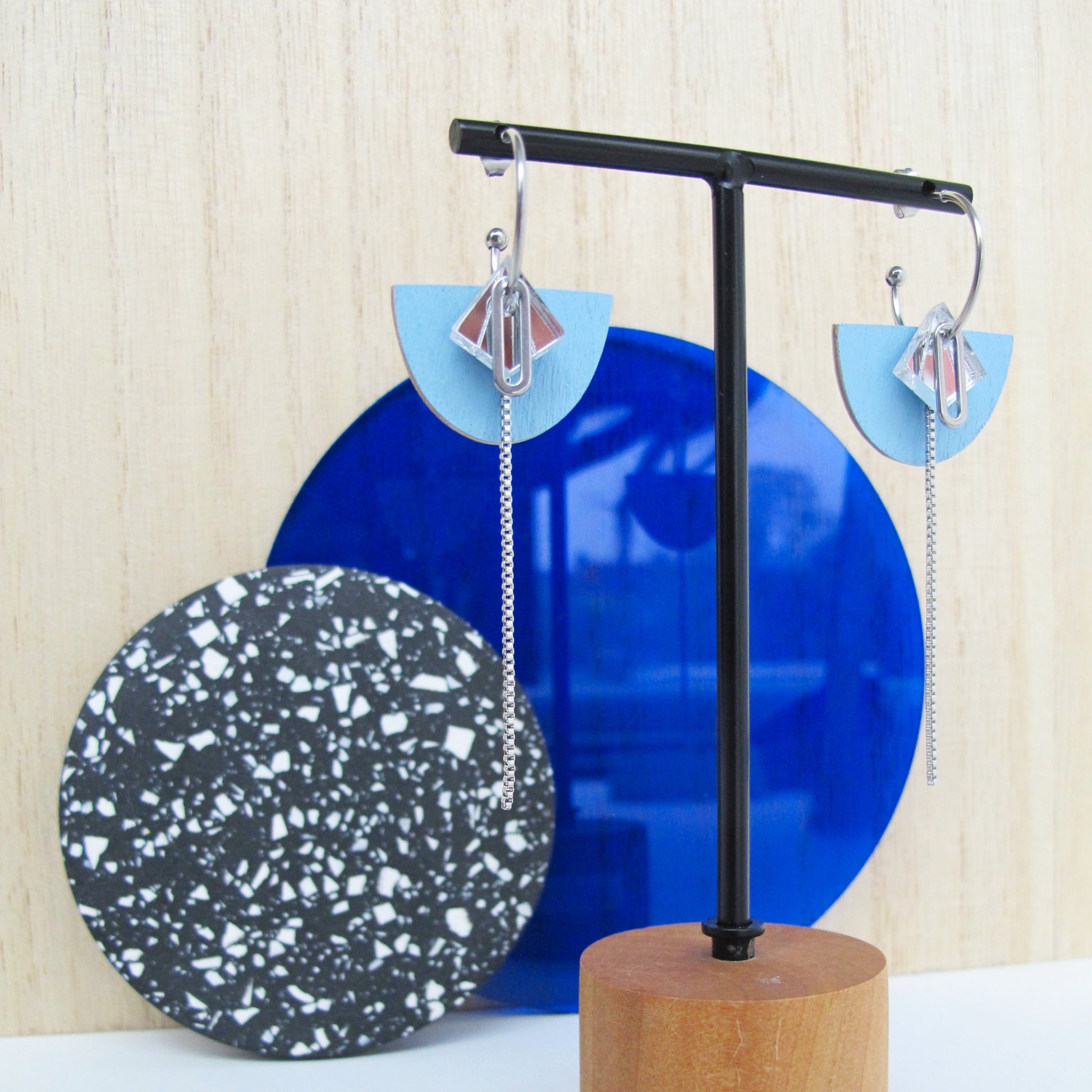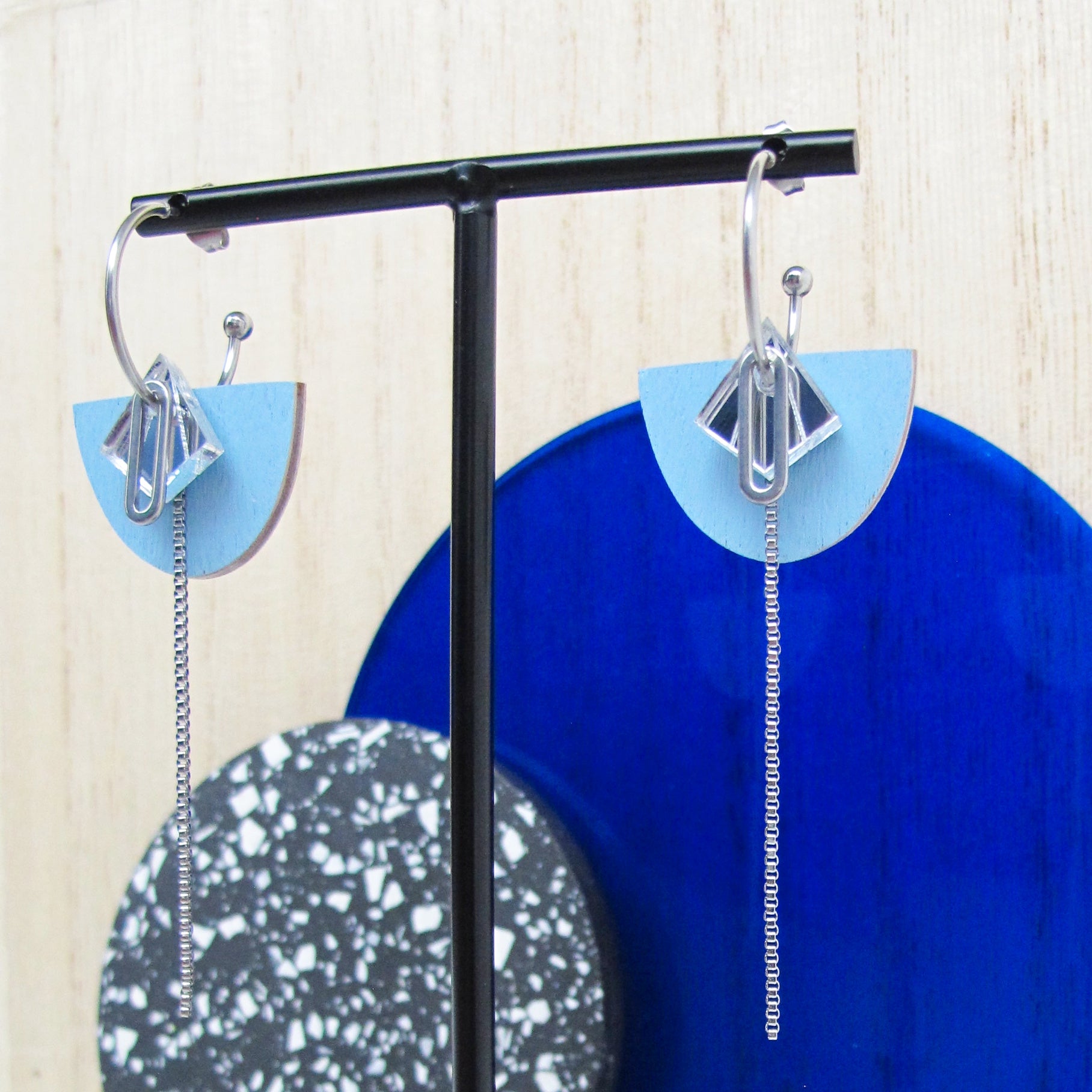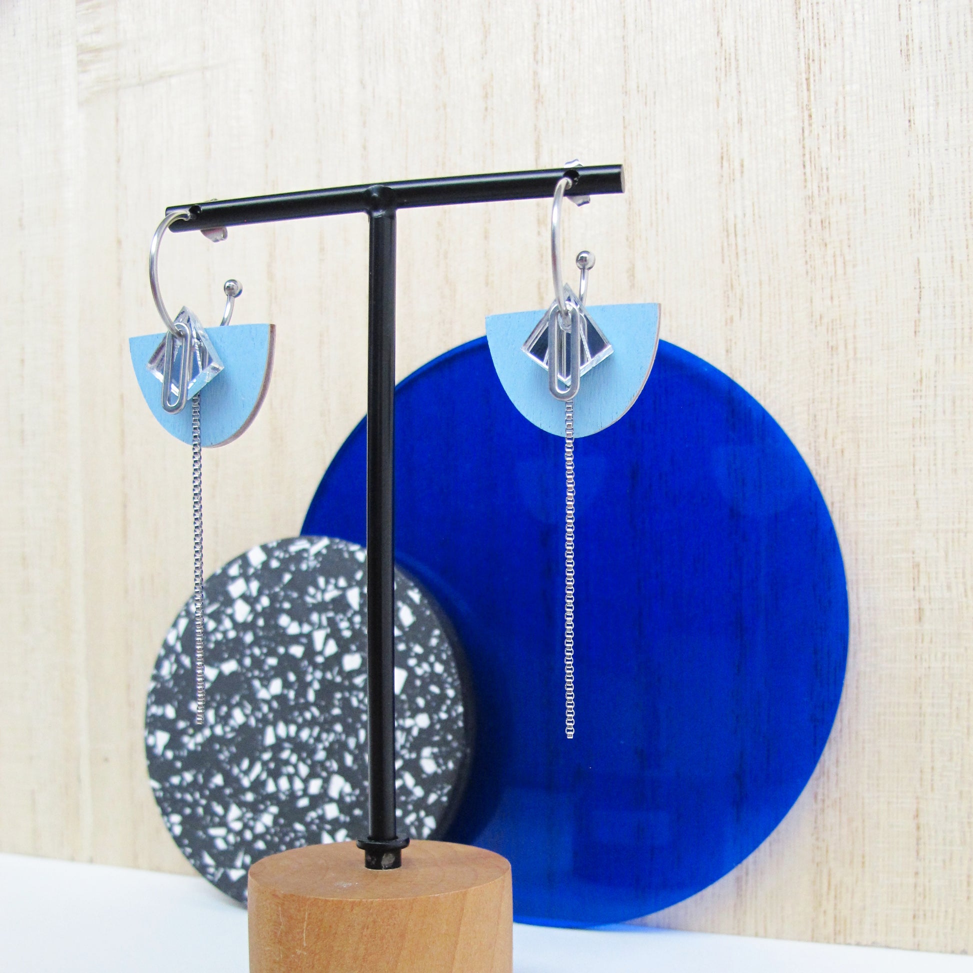 Én, deze nieuwe versie is modulair! Dat betekent dat je ze op veel verschillende manieren kunt dragen. De onderdelen kun je namelijk van de oorringen afhalen of juist toevoegen. Dit is de Oud Blauwe versie.