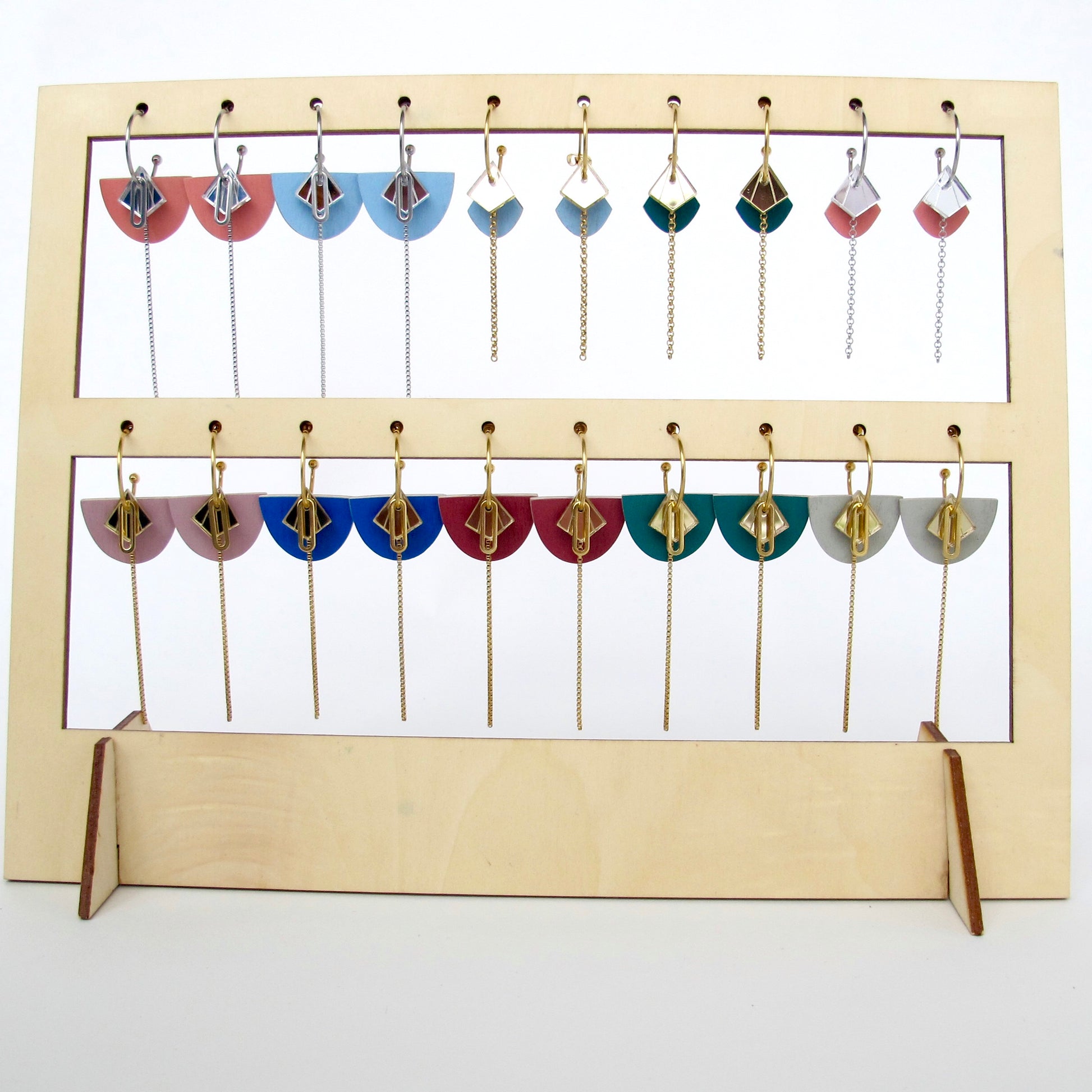 Er kan gekozen worden uit verschillende kleuren halve cirkels met een goud- of zilverkleurige ruit.