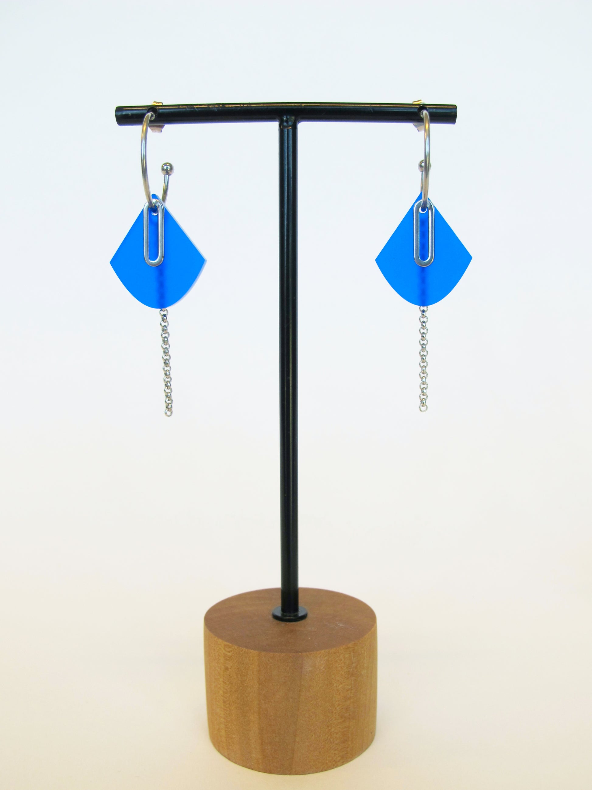 Er kan gekozen worden uit verschillende kleuren waaiers met een kettinkje en ovaaltje. Dit is de konings blauwe variant.