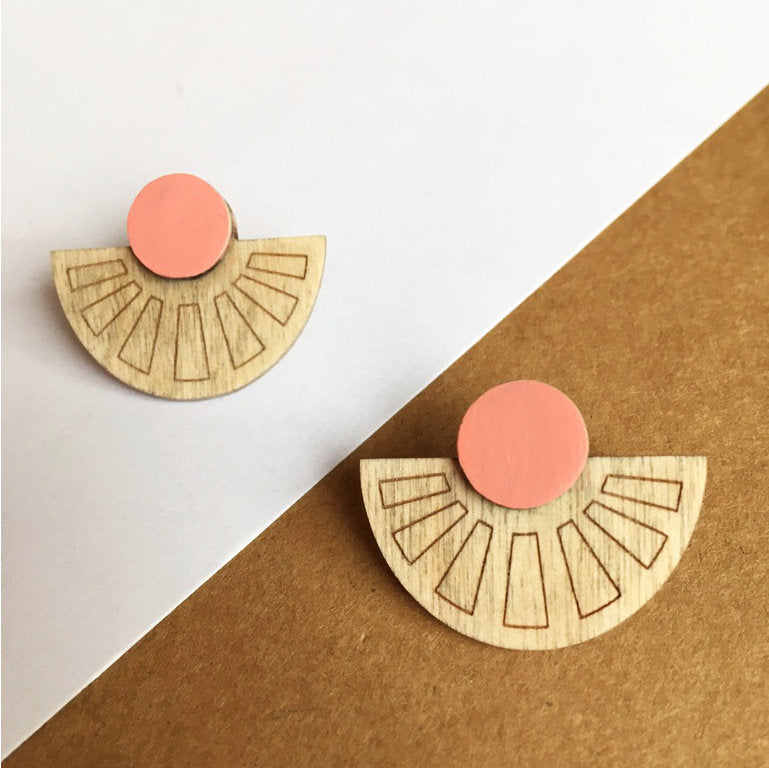 Deze half ronde oorstekers zijn geïnspireerd door de Art Deco stijl. Je vindt ze in verschillende varianten, allemaal in een lekker kleurtje.