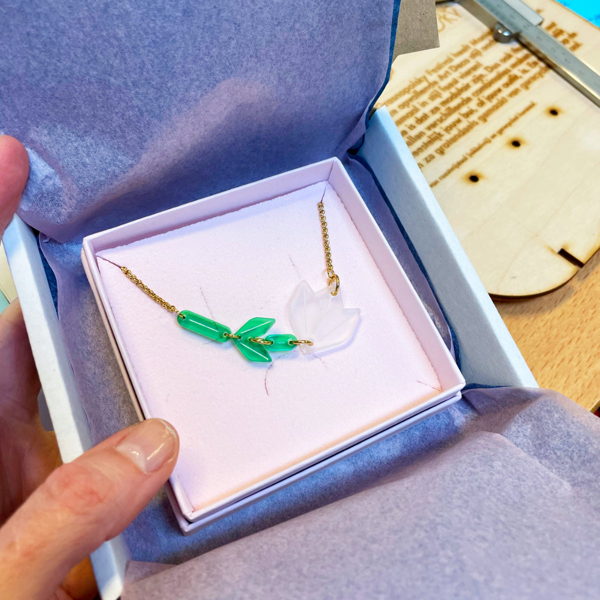 De nieuwe Tulp als ketting, onderdeel van de botanische collectie.