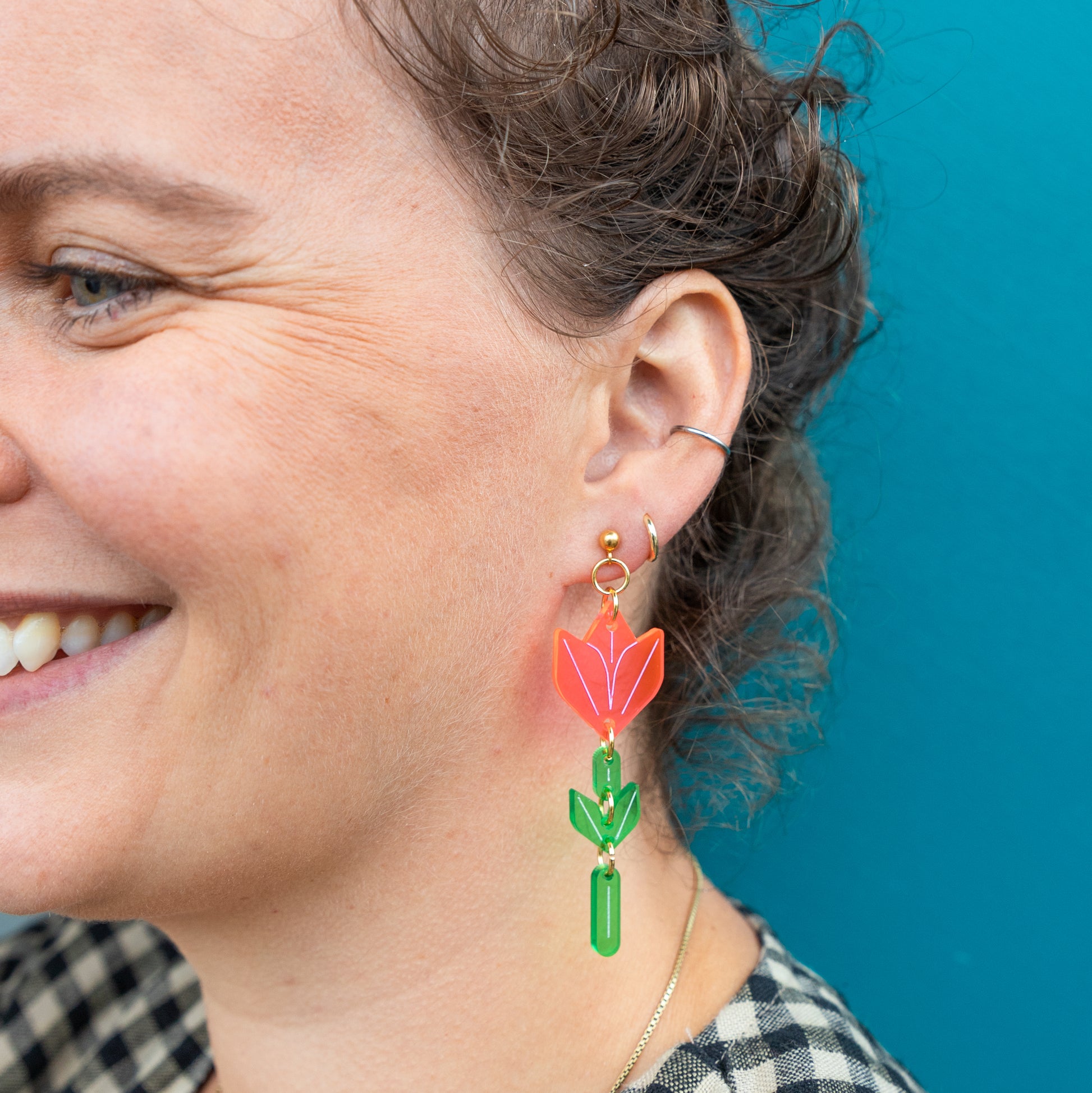 De Tulp als oorbel, deze Hollandsche klassieker mag natuurlijk niet ontbreken tussen alle bloemen sieraden.